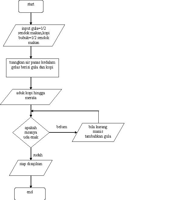 Suatu algoritma terdiri dari tiga struktur dasar, yaitu runtunan,. Sediakan panci, cangkir, air, kopi bubuk, gula dan sendok. Buatlah algoritma untuk menghitung luas segitiga. Jika tidak maka kembali pada langkah g. Meski sisi pahit dalam kopi tidak dapat dihilangkan, namun rasa manis pada.